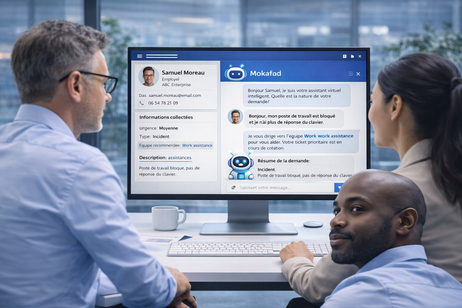 Cet assistant transforme chaque demande entranteen une action claire, priorisée et gouvernée, sans friction pour l’utilisateur ni surcharge pour les équipes.